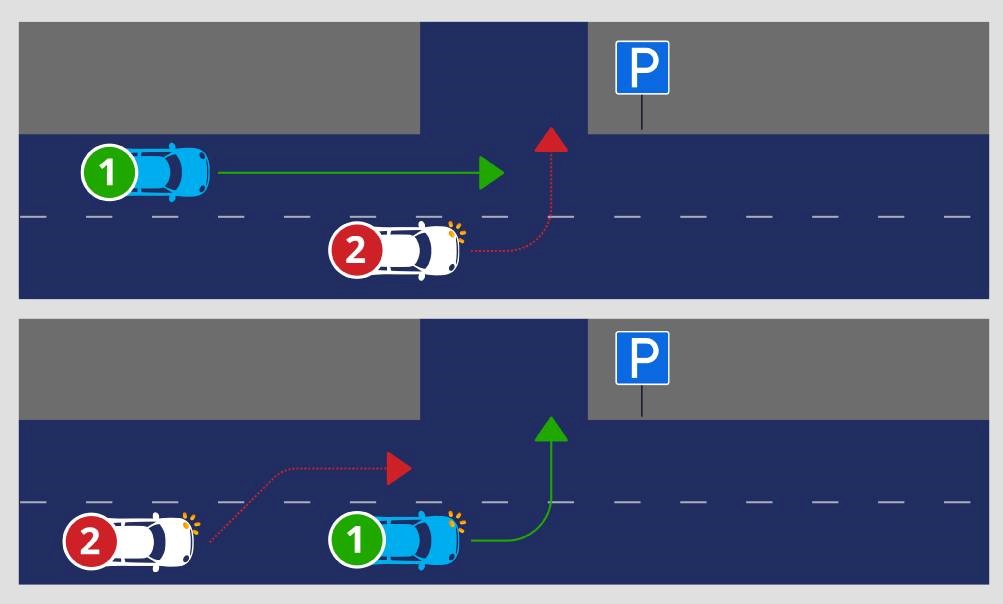 Pagal naują tvarką vairuotojas, sukdamas į kairę (apsisukdamas) ne sankryžoje, privalo duoti kelią ne tik priešinga kryptimi tiesiai arba į dešinę važiuojančioms transporto priemonėms, bet ir jį lenkiančioms transporto priemonėms, kai lenkiantysis jau yra persirikiavęs į priešpriešinio eismo juostą ir atlieka lenkimo manevrą, kur toks lenkimas yra leidžiamas.