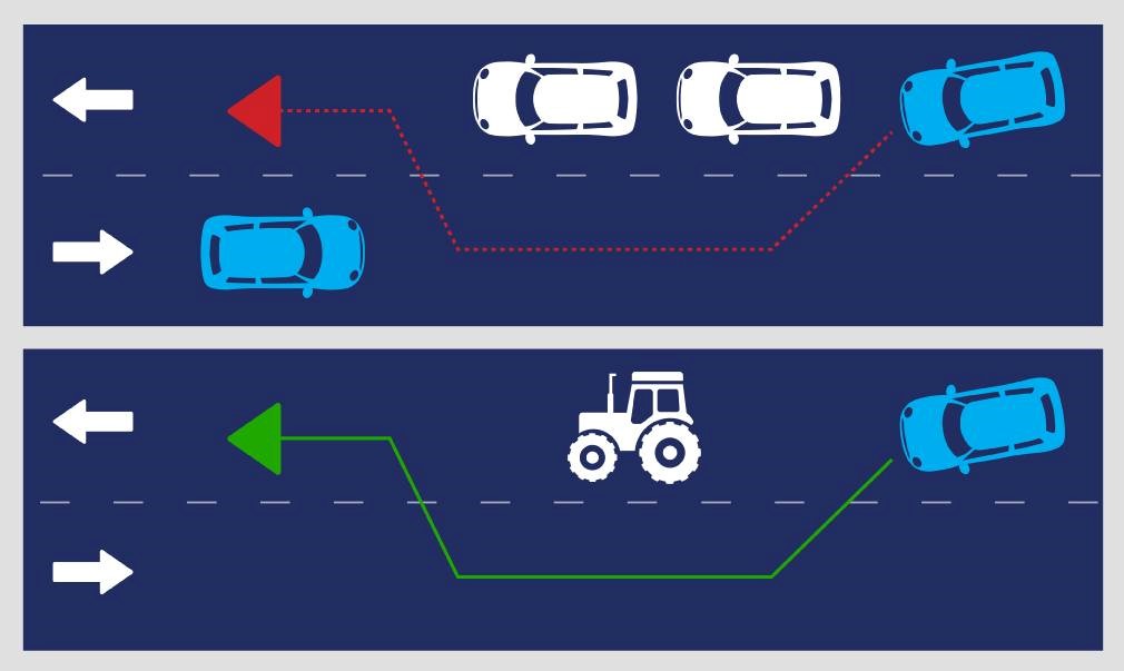 Priešingu atveju, vairuotojui dažnai keičiant eismo juostas be reikalo, akceleruojant ir taip sudarant pavojų aplinkiniams – bus traktuojama kaip chuliganiškas vairavimas.